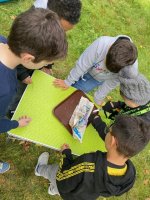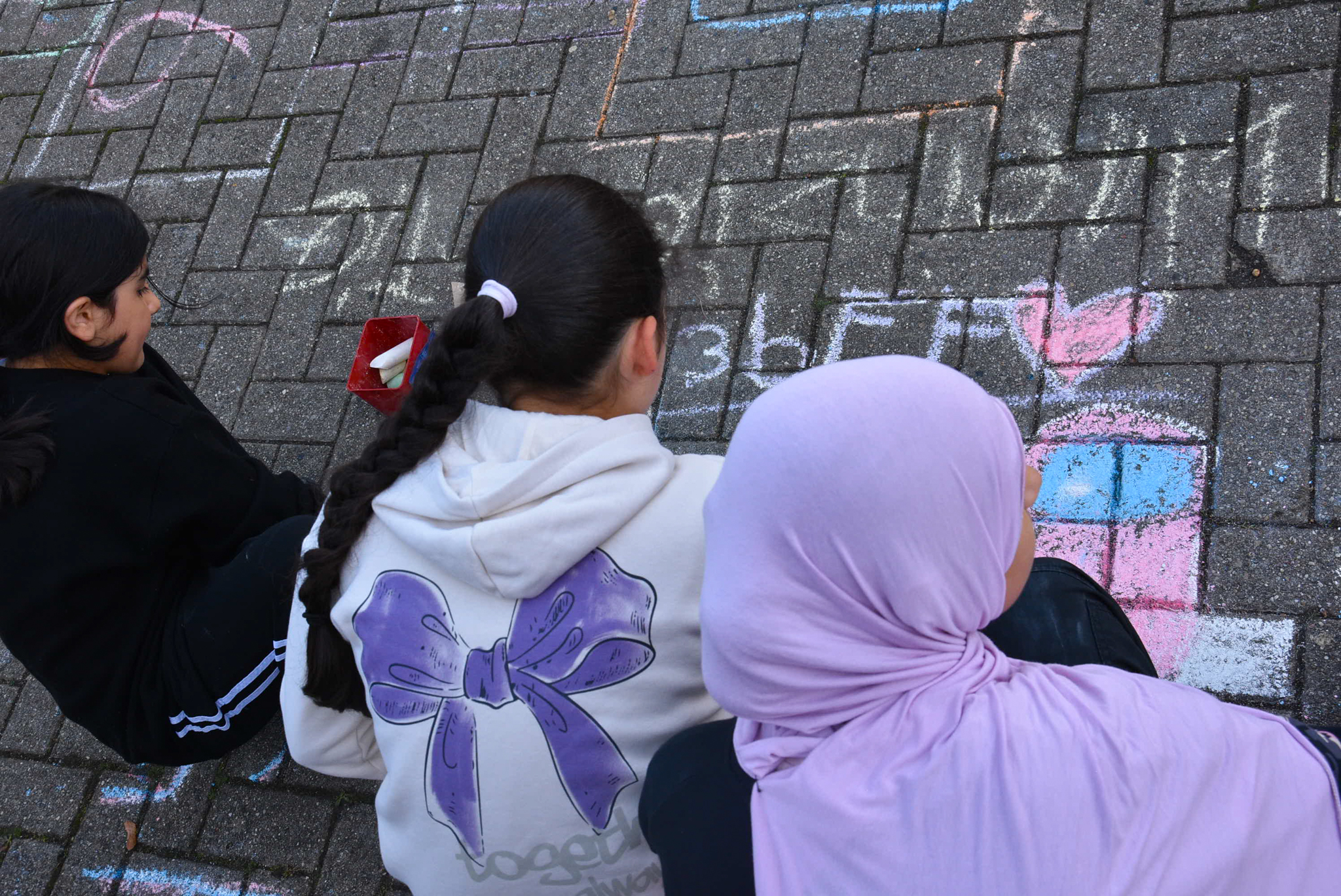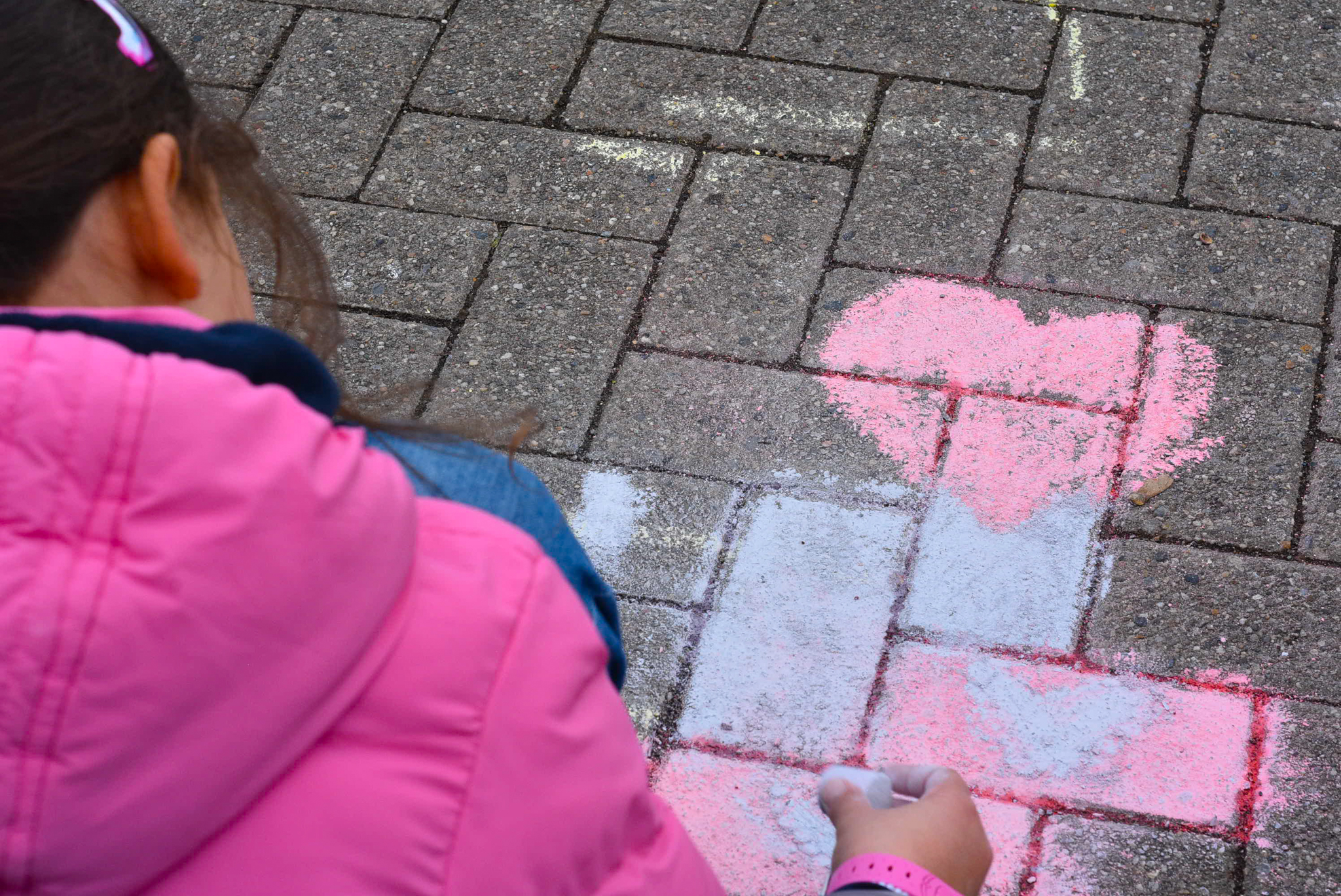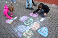 An der frischen Luft ließ auch das Malen mit Straßenkreide keine Langeweile aufkommen.