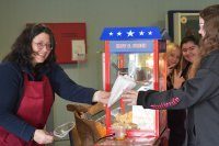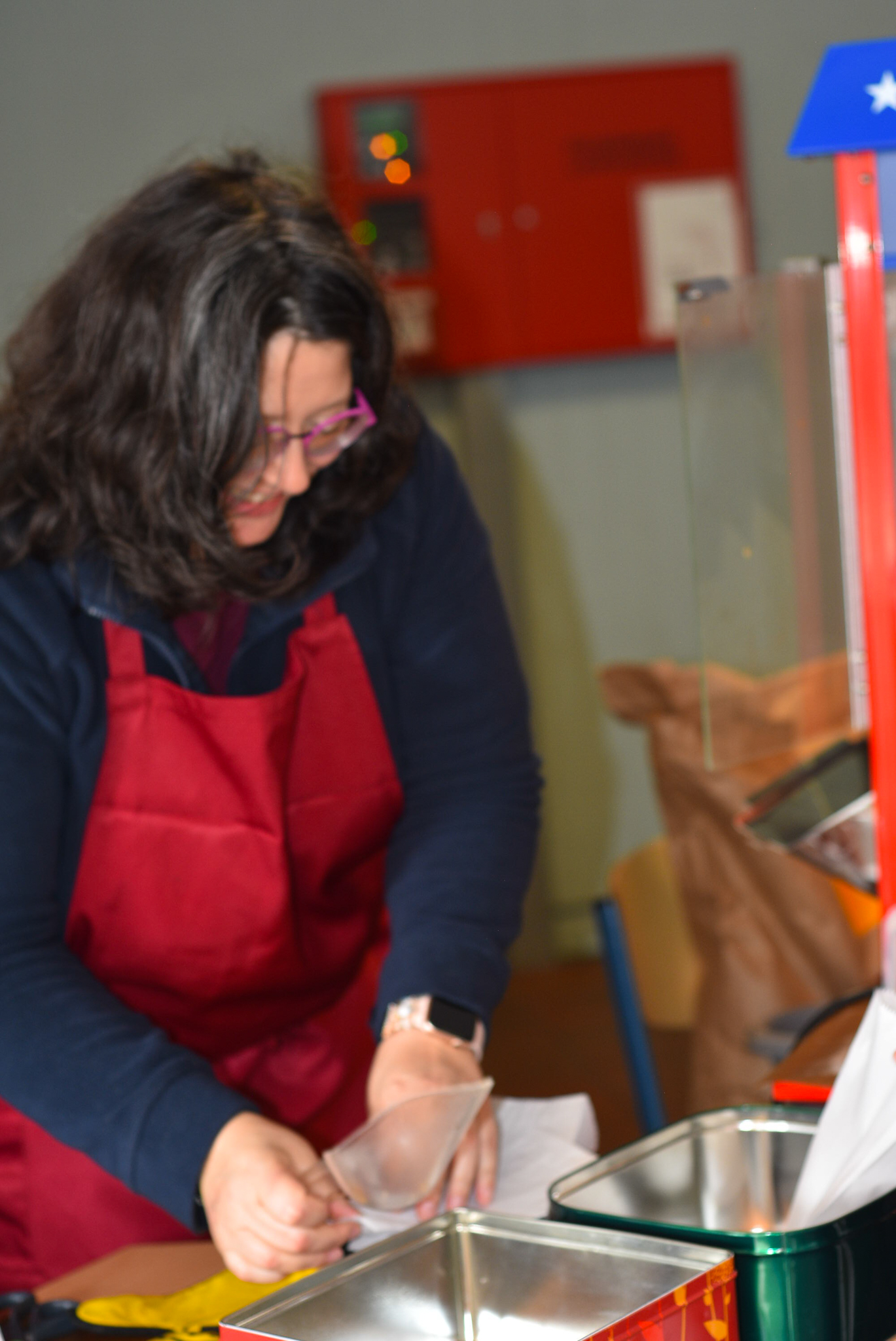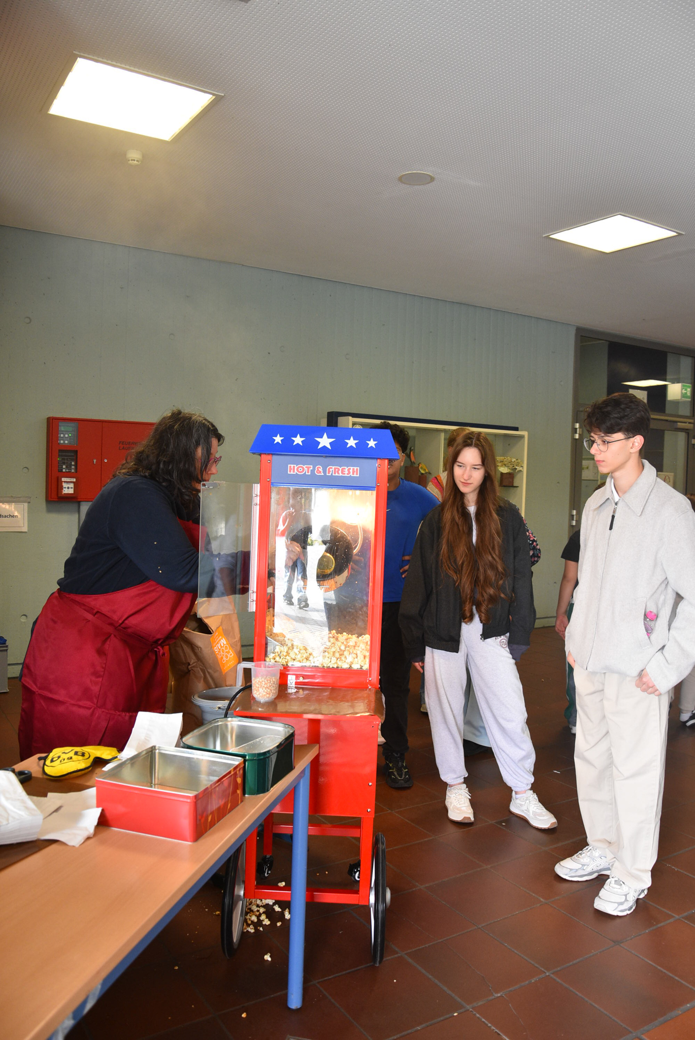 Die Schulleitung Frau Wandelt selbst stand am Popcornwagen und sorgte mit Begeisterung für Kirmesstimmung!