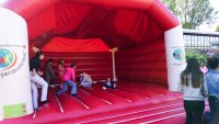 Im Park war wieder die beliebte Chill-out Lounge geöffnet. Wer eine Pause und Ruhe brauchte, der konnte sich in ein Zelt zurückziehen oder sich bei sonnigem Wetter in einen Liegestuhl legen. Dabei ein leckeres Getränk oder ein Stück Kuchen und der Tag war perfekt! Kleine Aktionen wie das Schokoladen-Wettessen rundeten die gemütliche Atmosphäre ab.