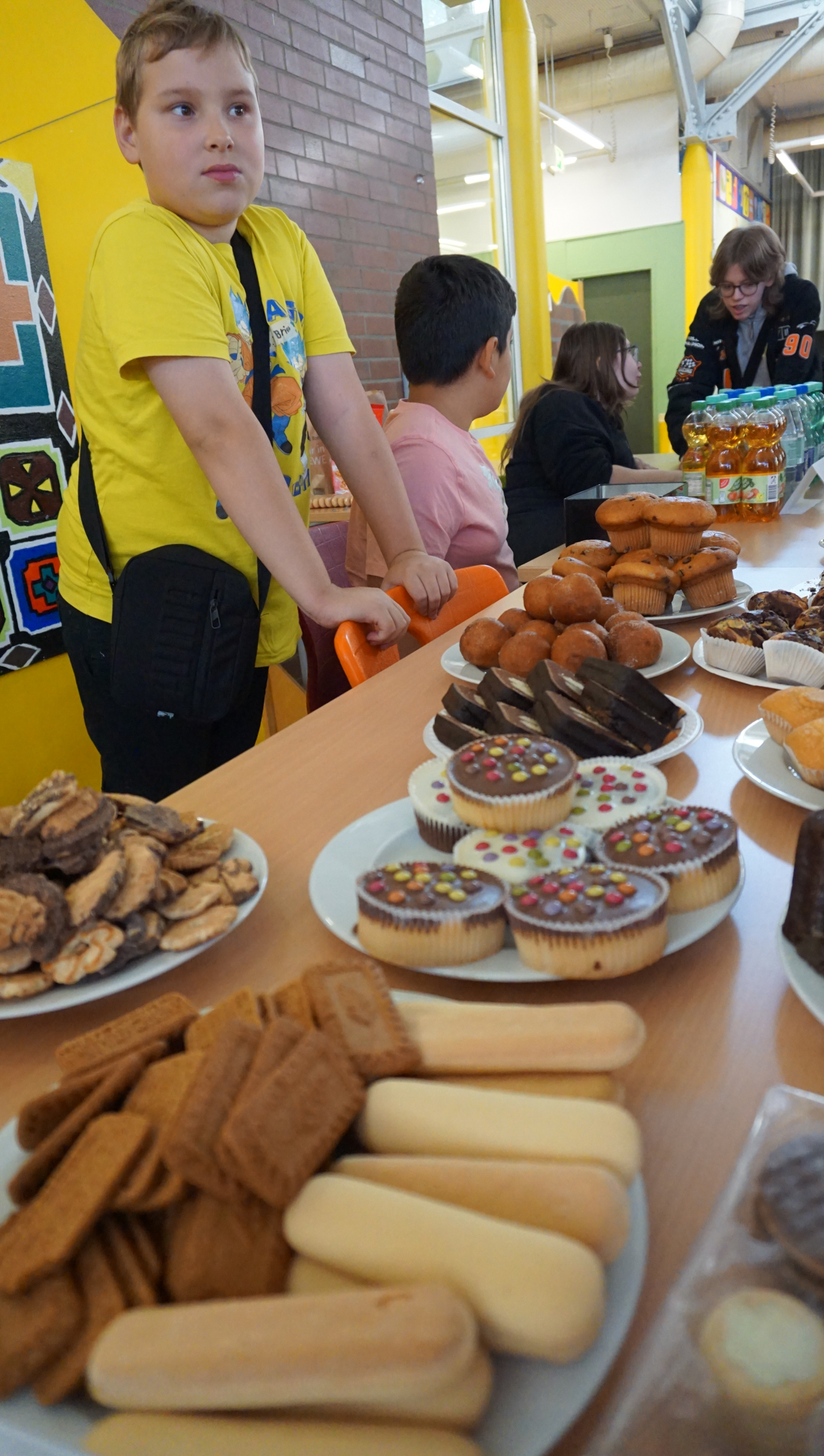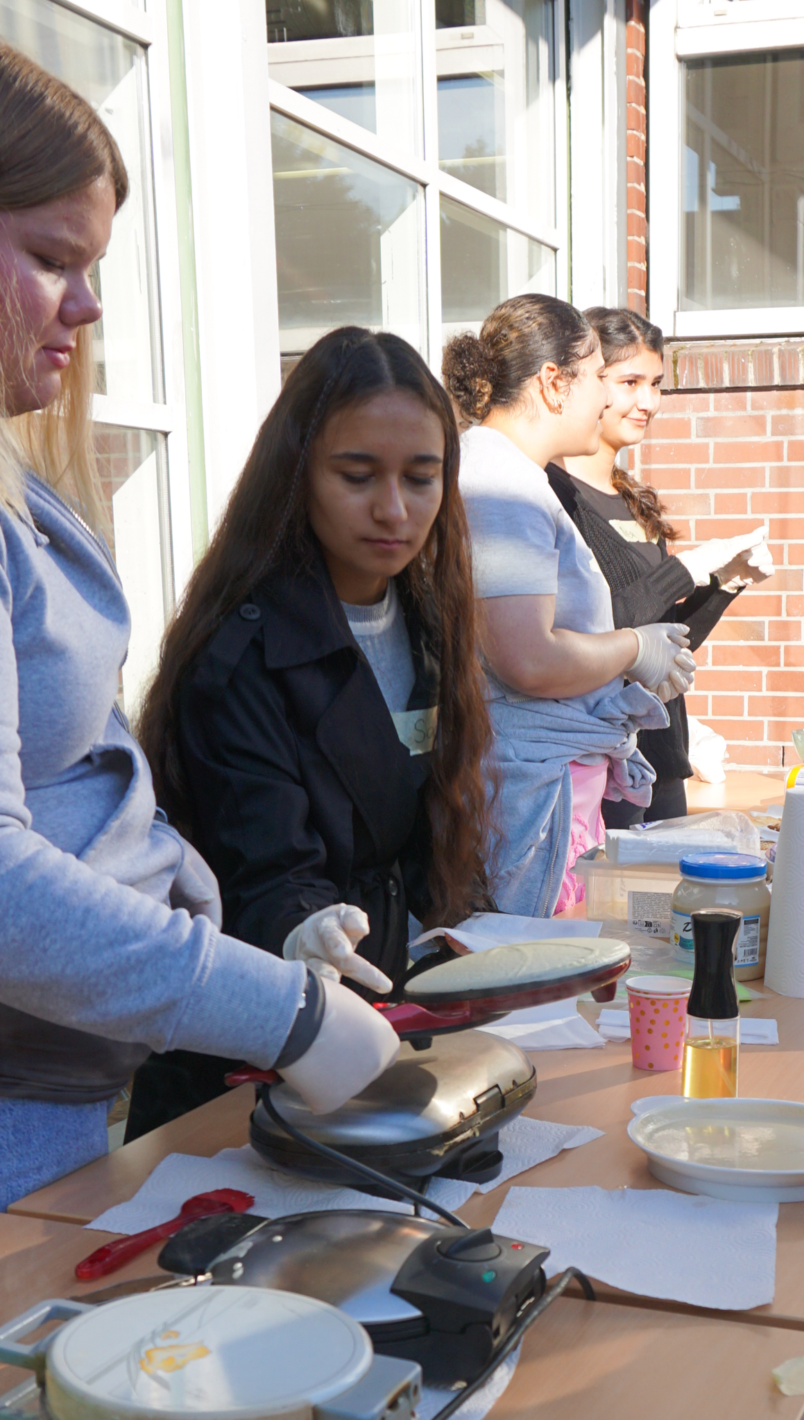 Die Oberstufe präsentierte ein beeindruckendes Kuchenbuffet mit „krassen Kuchen“ und leckeren Crêpes – wahlweise mit oder ohne Schokoladencreme.