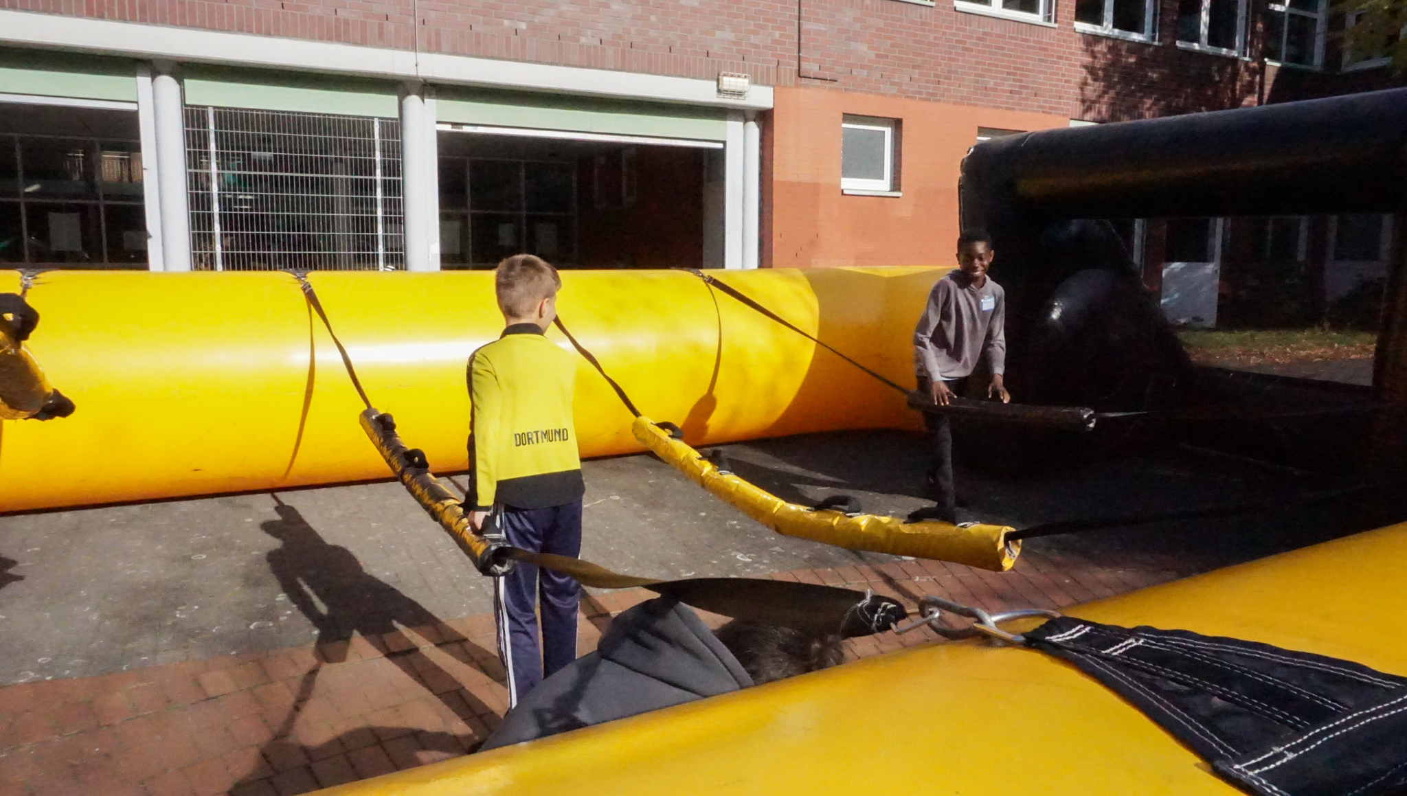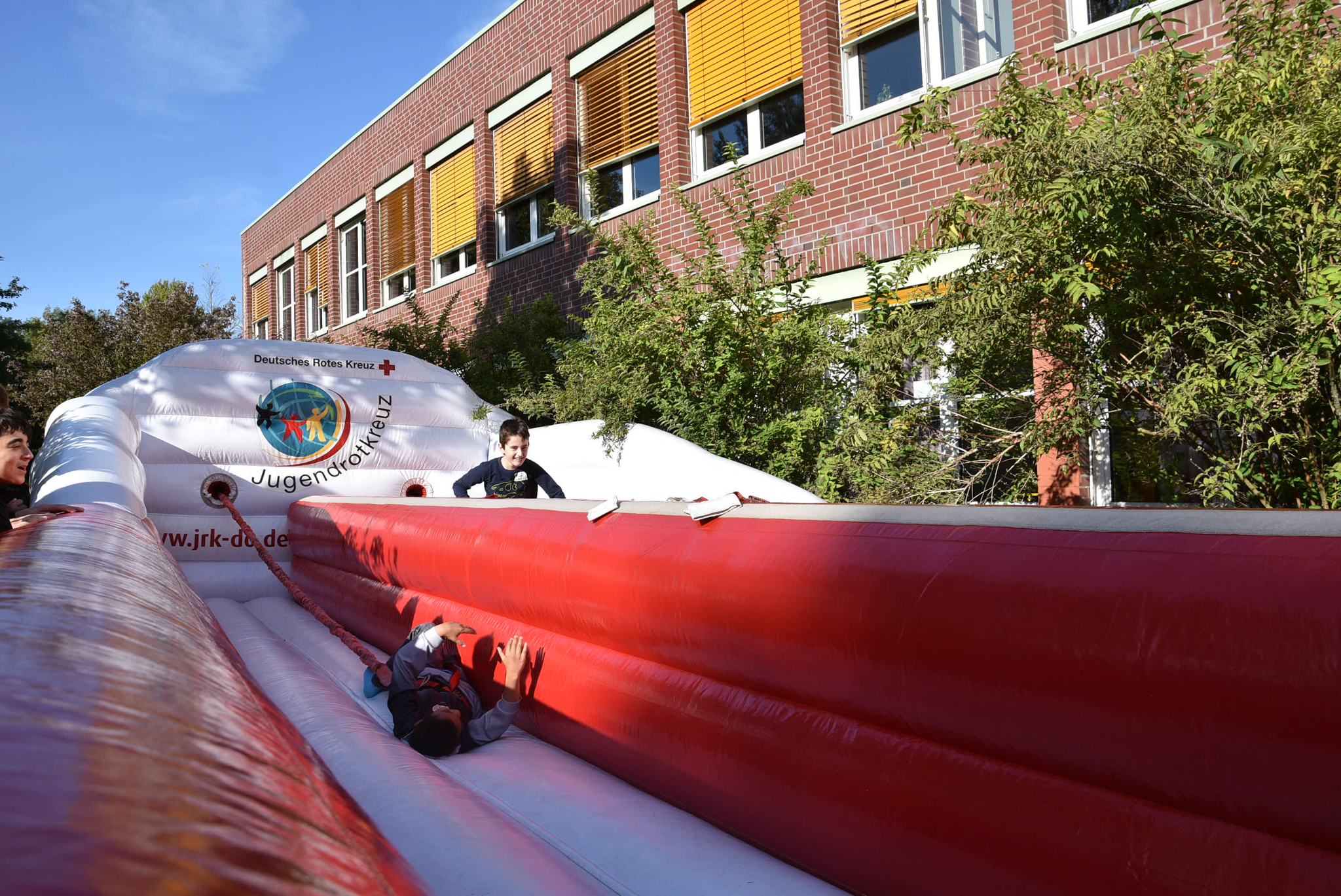 Dabei konnten die Schülerinnen und Schüler ihr Geschick in der Höhe oder auf dem Platz beweisen. Mutig wurde meterhoch geklettert oder Vollgas beim Sackhüpfen gegeben.