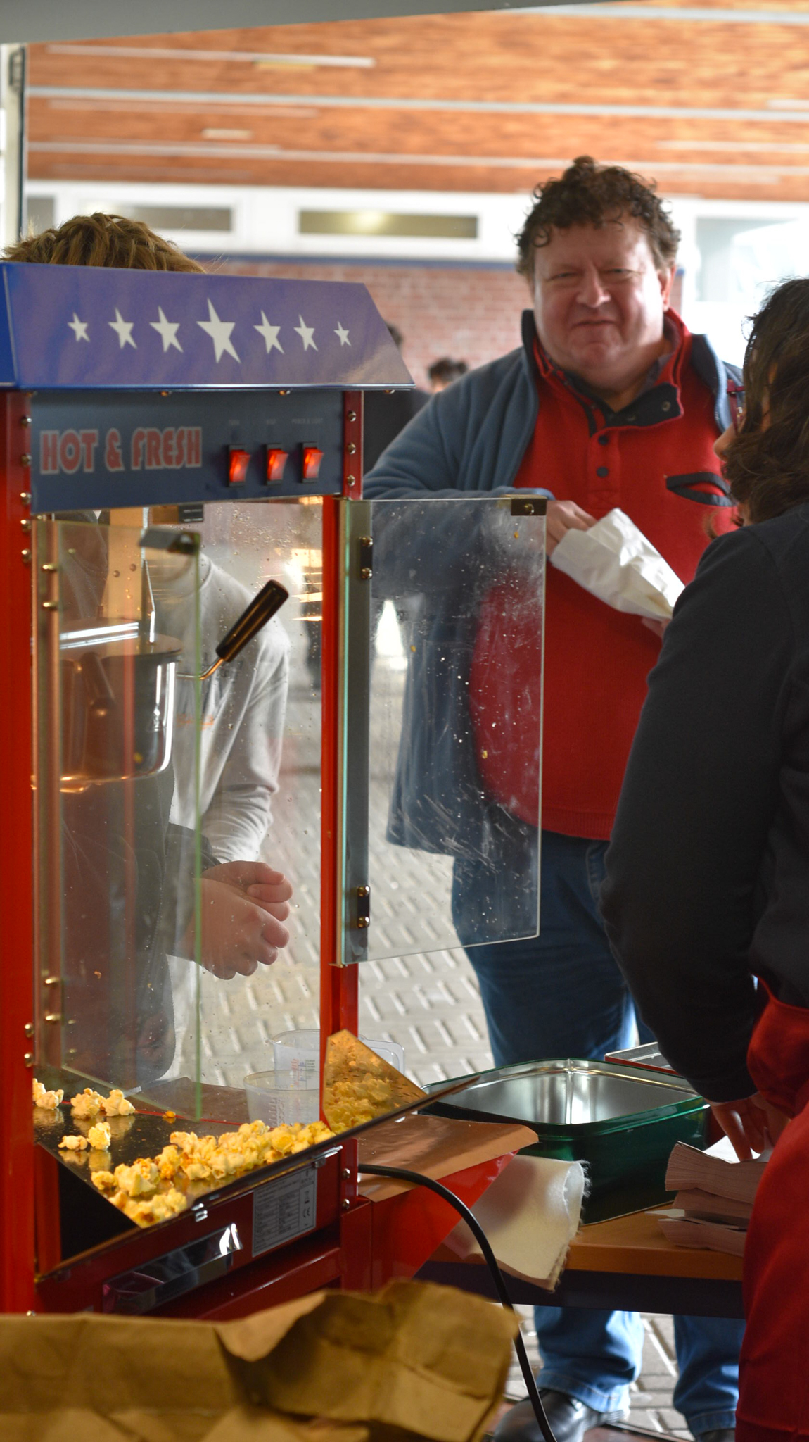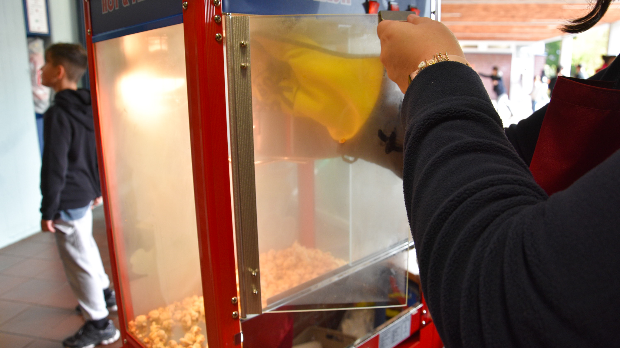 Eltern und Gäste konnten es sich am Kaffee- und Kuchenstand gemütlich machen, während der süße Vanilleduft von frisch gemachtem Popcorn durch die Luft zog.