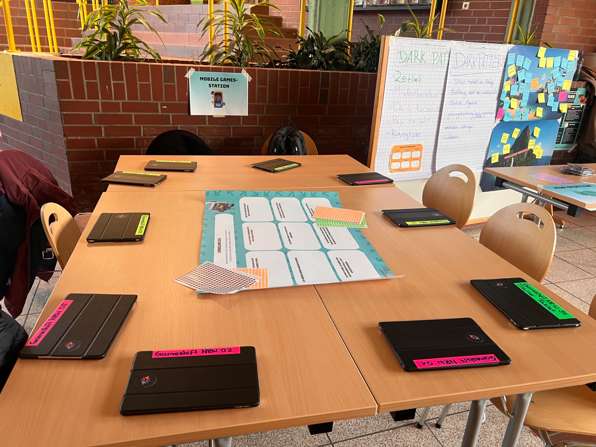 Dabei lernten sie zentrale Begriffe wie Dark Patterns, Mediensucht und Medienkontrolle kennen. Gemeinsam analysierten sie, wie Spiele und Apps gezielt dazu anregen können, immer weiterzuspielen oder Geld auszugeben – und wie man sich davor schützen kann.