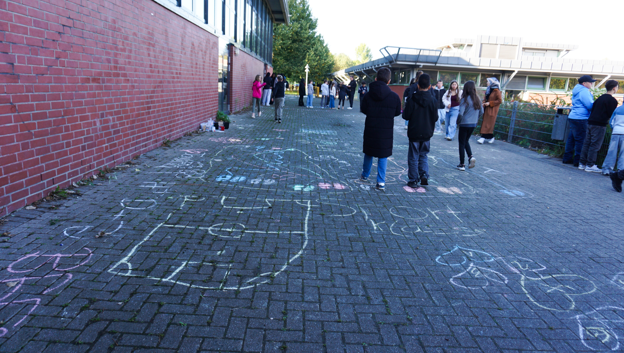 An der frischen Luft ließ auch das Malen mit Straßenkreide keine Langeweile aufkommen.