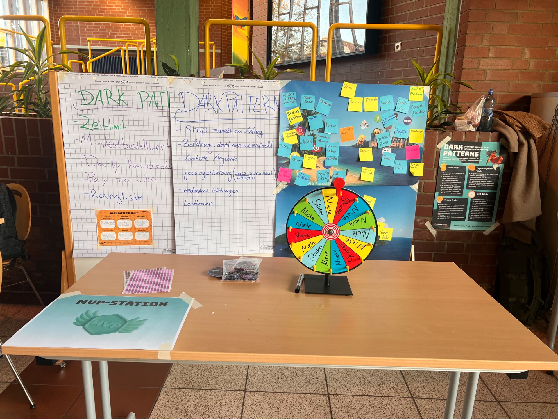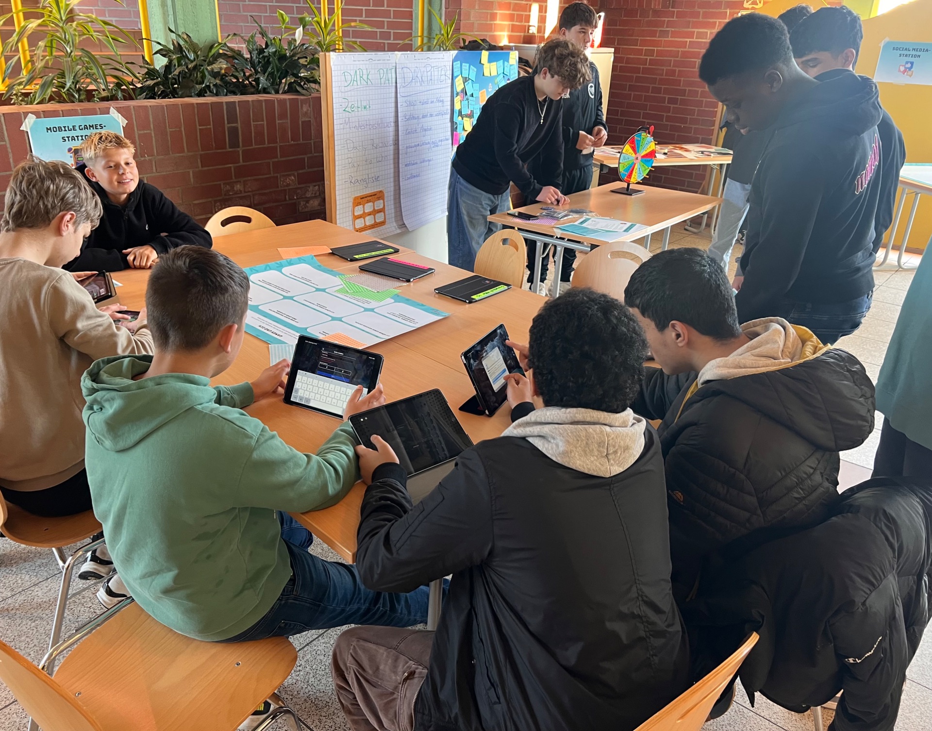 Dabei lernten sie zentrale Begriffe wie Dark Patterns, Mediensucht und Medienkontrolle kennen. Gemeinsam analysierten sie, wie Spiele und Apps gezielt dazu anregen können, immer weiterzuspielen oder Geld auszugeben – und wie man sich davor schützen kann.