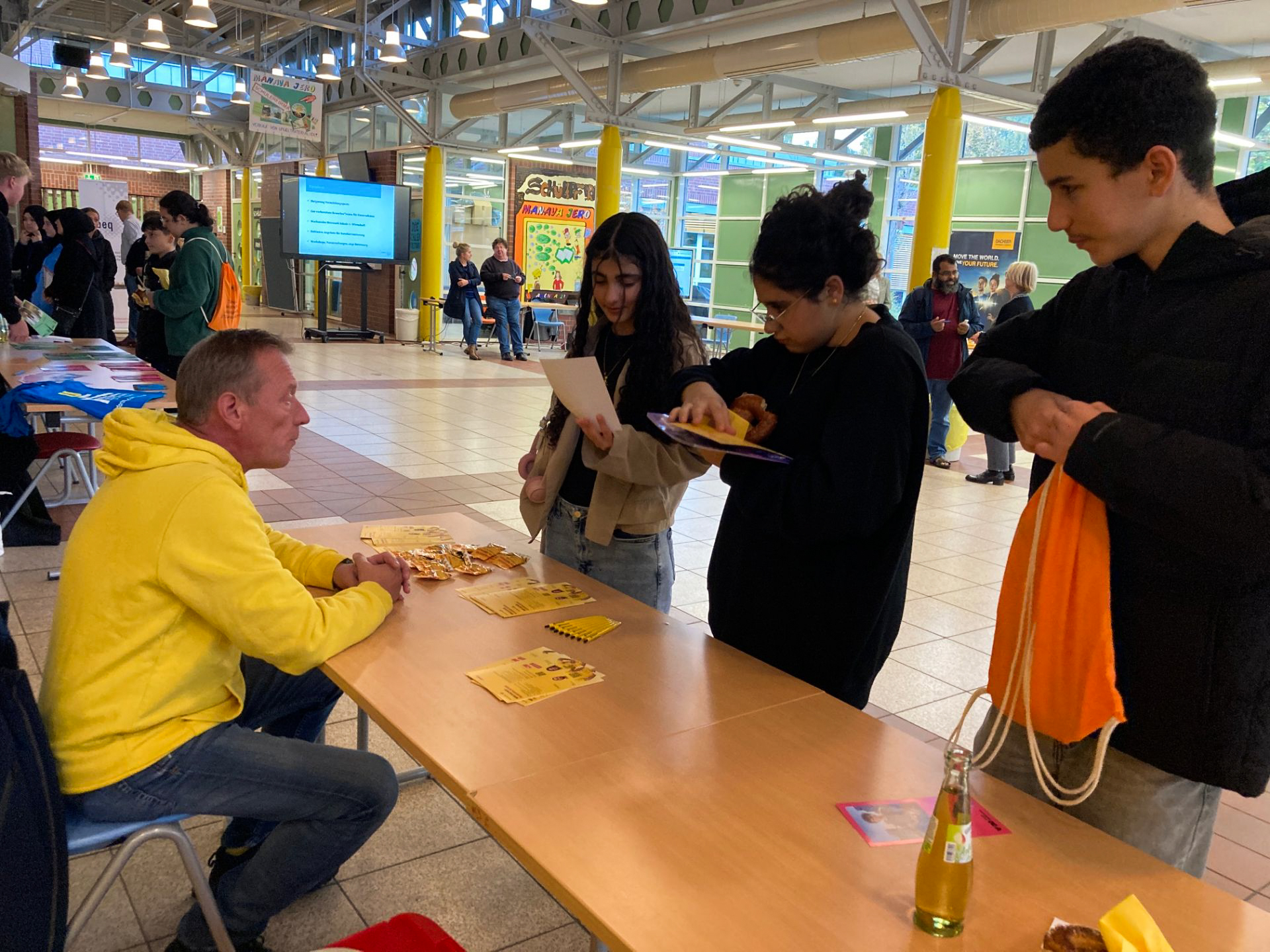Mehr als 30 Eltern und Erziehungsberechtigte nutzten die Gelegenheit, sich umfassend über Wege in Ausbildung, Beruf und Studium zu informieren. In entspannter Atmosphäre konnten sie direkt mit Expert*innen aus verschiedenen Bereichen ins Gespräch kommen. Mit dabei waren: