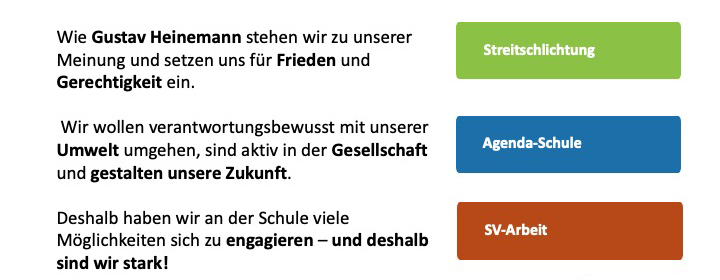 In unterschiedlichen Projekten fordern wir unsere Schüler*innen auf, sich mit sich selbst, den Mitmenschen und mit der Umwelt auseinanderzusetzen. Dies ist für uns die wichtigste Arbeit im Rahmen von Partizipation und Entwicklung des Demokratiegedankens. Deshalb ist uns eine Werteerziehung wichtig.